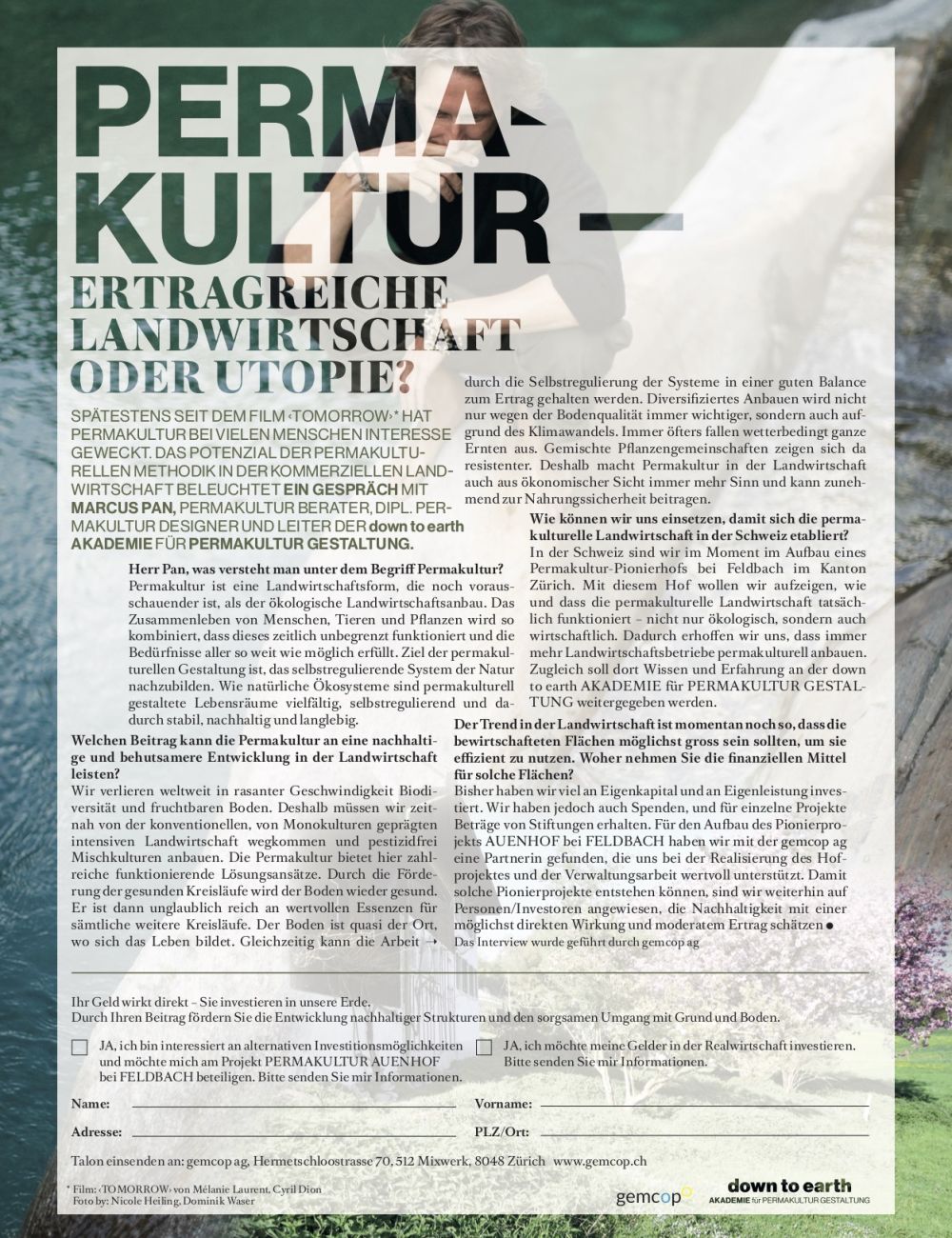 Spätestens seit dem Film ‹Tomorrow› hat Permakultur bei vielen Menschen Interesse geweckt. Das Potenzial der permakulturellen Methodik in der kommerziellen Landwirtschaft beleuchtet ein Gespräch mit Marcus Pan, Permakultur Berater, dipl. Permakultur Designer und Leiter der down to earth AKADEMIE für PERMAKULTUR GESTALTUNG.